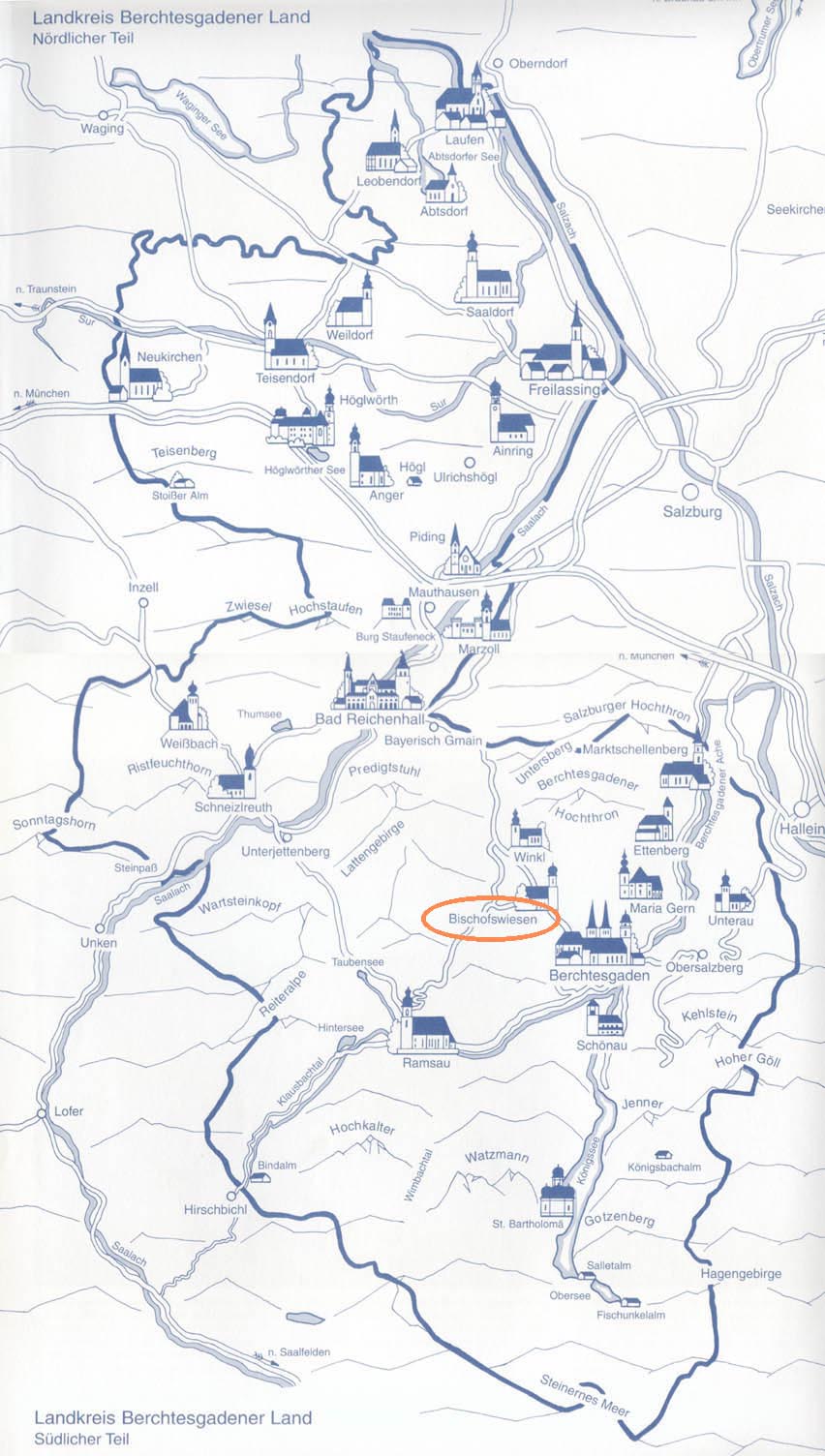 19 世纪的浪漫画家用一种不同寻常的方式探索山里的世界。第一批来访者常常会住上几个月。正是像卡尔-罗特曼(Carl Rottmann)和卡斯帕-大卫-弗里德里希(Caspar David Friedrich)等艺术家对这里的景致的令人惊奇的美化,使贝希特斯加登(Berchtesgadener)变得更知名。1888年,一条铁路将慕尼黑和萨尔茨堡(Salzburg)连接了起来,登山协会也成立了。由于适合夏季旅游和壮观的山区景色,在广告的作用下,贝希特斯加登(Berchtesgadener)的旅游业迅速发展。到1910年,这里有太多的参观者,以致于柯尼希湖(Konigsee)的南部被作为自然保护区以保护植物,并且这很快扩大到许多的周围区域,包括瓦茨曼(Watzmann)。在1978年,包括建设缆车在内的想法终于导致了一块21,000公顷(81平方英里)的自然公园的建立以防止对自然进一步的破坏。 必须采用人工干预措施来保护天然公园和可能的山区牧场的生态。这里是许多高山花卉的所在地,然而,困难的生活却使他失去了吸引力。高山农业受到工资成本高、运输困难和多年的过度放牧的困扰,尽管这个老传统始终是该地区的主要特征之一。公园没有一部分是不开放的,因为它大部分都是险峻的岩面和难以攀登的高原,限制几乎没有必要。由于水的缺乏,很少有人试图离开已有的道路,在山上建筑更多的简易建筑是不切实际的。 贝希特斯加登(Berchtesgadener)有大约8000人口,比绍夫斯维森(Bischofswiesen) 7000人,舍瑙(Schonau)和柯尼希湖(Konigssee)各5300人,马克特斯舍仑堡(Marktschellenberg) 1800人,Ramsau 1700人。对于这样大的一块地方来说,人不多,但都聚集在山谷和可居住的山腰。每年有3,000,000游客在此住宿,这里的人口被游客所吞没。但非常令人惊奇的是,这里却很好地保持了乡村风貌和古老的传统。如今,正是这里的新鲜空气、古老的传统、木器制造业、精巧的教堂、农场以及历史上赫赫有名的古代建筑,吸引着参观者来到贝希特斯加登(Berchtesgadener)。吸引游客的还有这里的盐,这里的有益健康--特别是呼吸系统健康--的环境。盐矿的历史的图片介绍可以在韦斯巴赫塔(Weiβbachtal)和盐矿博物馆找到。吸引游客的还有第三帝国和帝国宗教历史的影子,也有它黑暗的一面。但是,比上述内容更具有吸引力的是它的景色:未受破坏的天然公园和风景如画的湖泊。 莱兴哈尔(Reichenhall)的本意是“富含盐”。据说,伊利里亚人、凯尔特人和罗马人在周围山区开采了盐矿,接着是巴伐利亚人,为了争夺开采权,在萨尔茨堡(Salzburg)和巴伐利亚(Bavaria)之间产生了矛盾,一直到18世纪。公元790年,在一份萨尔茨堡(Salzburg)的文件里第一次提出解决方案。大约在1136年,萨尔茨堡(Salzburg)的比斯霍普-康拉德(Bishop Konrad)建立了圣猜瑙(St Zeno)的奥古斯廷尼安(Augustinian)修道院,目的是保护萨尔茨堡(Salzburg)对莱兴哈尔(Reichenhall)盐的权利。有关盐的争论按照巴伐利亚爵士们的意见,在12世纪得到解决,修道院变成了一个重要的宗教、文化和艺术中心。13 世纪,巴伐利亚柯尔海姆(Kelheimer)的路德维希(Ludwig)爵士在莱兴哈尔(Reichenhall)修筑城堡--古特斯泰因(Gutterstein)要塞,城墙上有14座塔楼,5个大门,并发展成为德国最富有的城镇。在16世纪之前,所有的盐场都由巴伐利亚人管理。盐是公爵们可观收入的源泉,他们因而为新事物打开大门:1916年,建筑师汉斯-西蒙-莱芬斯图尔(Hans Simon Reiffenstuel)建造了一条令人轰动的木制管道。它把莱兴哈尔(Reichenhall)、西格斯道夫(Siegsdorf)和特劳恩斯泰因(Traunstein)连接起来,这条管道使用了200年,是世界上最早的管道。 莱兴哈尔(Reichenhall)已经是一个相当大的城镇,从1980年以来,他已经成了贝希特斯加登地区(Berchtesgadener Land)的行政中心。盐仍然是一个重要的经济因素,但它现在主要被用于药浴。除了弗洛里安费尔特(Florianiviertel)和圣猜瑙(St Zeno)修道院以外,由于频繁的火灾,最初的建筑物已经所剩无几。火灾常常由于在炼盐工作中不小心而引起。并且,莱兴哈尔(Reichenhall)的旧地区也在1945年的空袭中受到打击。然而,宽阔的道路、1948年的新罗马式的盐场,以及新的温泉中心,反射出了受几个世纪影响背后的信心。 阿尔卑斯山弯曲延伸到莱兴哈尔(Reichenhall)盆地北部的豪克尔(Hogl),该地区称为普坡特角(Rupertiwinkel)地区,包括萨尔察赫(Salzach)河上的劳芬(Laufen)。虽然普坡特角(Rupertiwinkel)属于莱兴哈尔(Reichenhall)达1000年之久,在1816年才成为巴伐利亚的一部分,但萨尔茨堡(Salzburg)最早的主教St Rupert却成为过去180年唯一的守护神。与萨尔茨堡(Salzburg)之间的联系一直保持着,它的文化影响在劳芬(Laufen)古镇、在普坡特角(Rupertiwinkel)南部的教堂和农舍中得到了明显的体现。 在皮丁-毛特豪斯(Piding-Mauthausen)的斯桃芬角(Staufeneck)城堡,曾经守卫了普坡特角(艾克Rupertiwinkel)的边界,今天,城堡下的慕尼黑至萨尔茨堡(Salzburg)的B20公路连接该行政区南北两部分。南部是高山景色,在北边是多山、有森林、草地、荒野、隔离的农田、池塘和村庄的风景画。唯一大一点的城镇是西部的泰森道夫(Teisendorf) 。这里酿造的维尼格(Wieninger)啤酒誉满整个地区,包括皮丁-毛特豪斯(Piding-Mauthausen)、中央地区(Mitterfelden),尤其是东部的弗莱拉辛(Freilassing)。 在萨尔察赫(Salzach)河湾上,古老的航运城镇劳芬(Laufen)已经有1000多年的历史。它可能是普坡特角(Rupertiwinkel)历史上最重要的城镇。从中世纪早期至19世纪,该处的河流一旦中断,